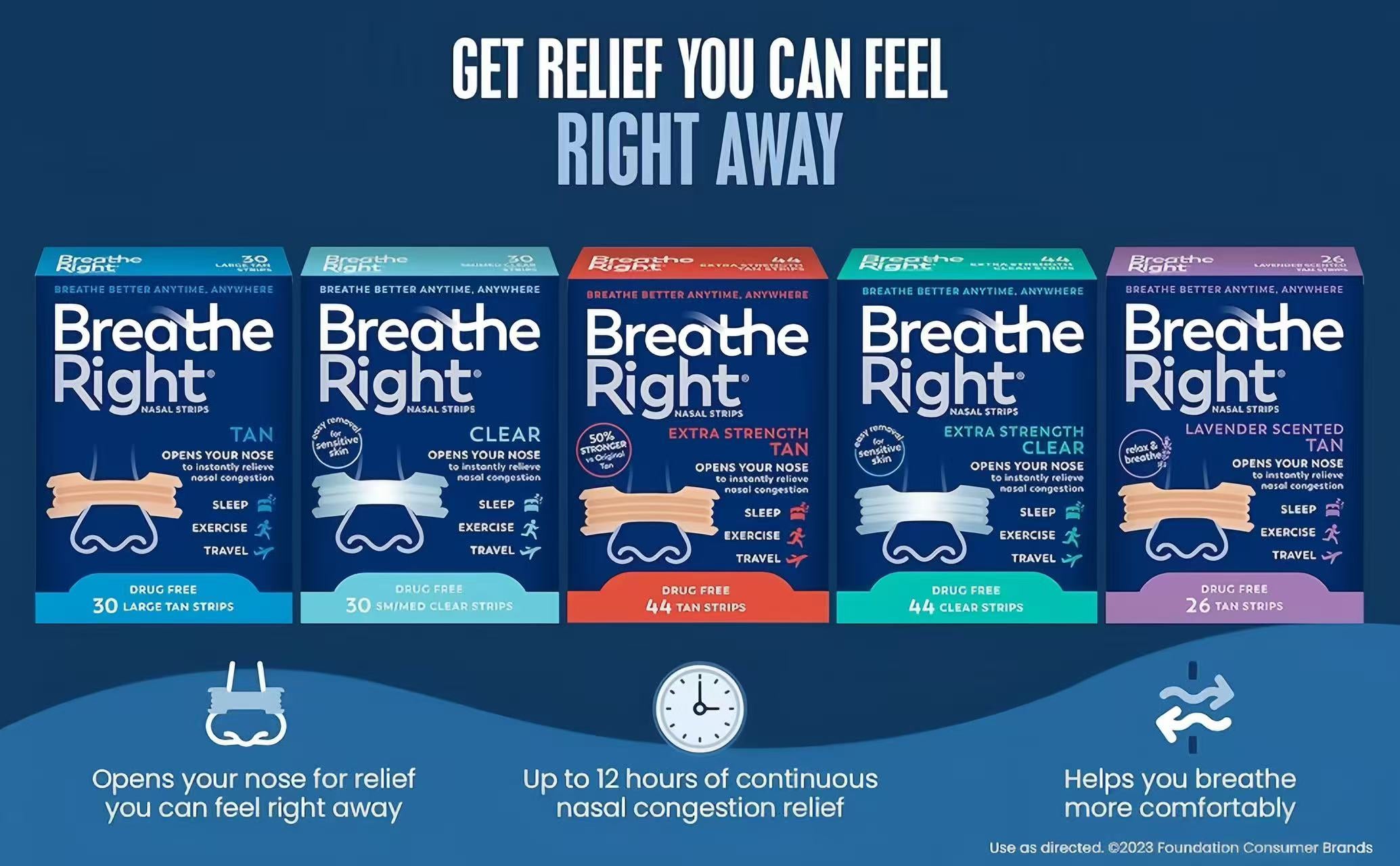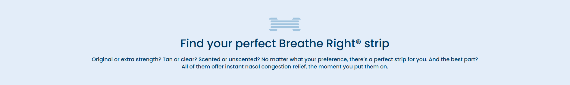 See how Breathe Right’s flexible spring‑like bands instantly relieve nasal congestion by physically opening your nose for improved airflow. Whichever strip you choose, they all work the same way, so every breath feels…ahhh.